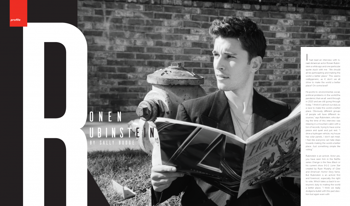 by Sally BudgePhotography by Jasper RischenGrooming by Danni Katz I had read an interview with Israeli-American actor Ronen Rubinstein a while ago and one particular quote stuck with me: “We …