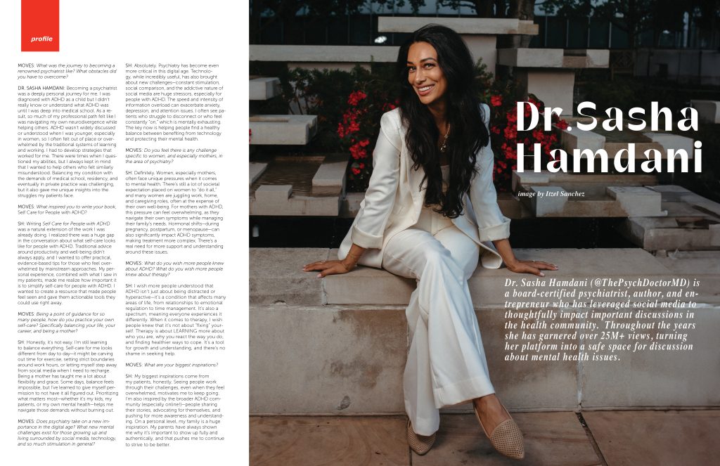 SASHA HAMDANI: Becoming a psychiatrist was a deeply personal journey for me. I was diagnosed with ADHD as a child but I didn’t really know or understand what ADHD was until I was deep into medical school. As a result, so much of my professional path felt like I was navigating my own neurodivergence while helping others. ADHD wasn’t widely discussed or understood when I was younger, especially in women, so I often felt out of place or overwhelmed by the traditional systems of learning and working. I had to develop strategies that worked for me. There were times when I questioned my abilities, but I always kept in mind that I wanted to help others who felt similarly misunderstood. Balancing my condition with the demands of medical school, residency, and eventually in private practice was challenging, but it also gave me unique insights into the struggles my patients face.